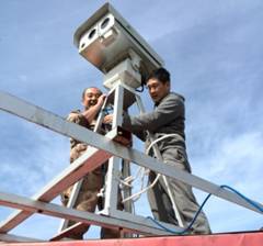 8、应用领域:森林防火监控预警、景区昼夜监控、城市高空瞭望及海域动态监控等; 安装现场