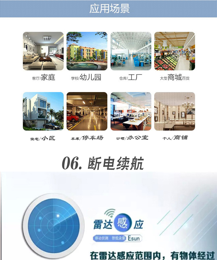3600MA大功率备用电池,停电应急供给,240分钟续航,支持雷达录像用电,不用担心断电无证据,自动充电放电,IC保护电池。