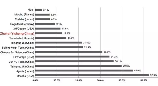 2.人脸识别技术优势(FRVT2013全球脸部识别供应商系统性能测试:人脸识别算法在FRVT2013全球脸部识别供应商系统性能测试中获得国际领先成绩。在7家中国团队参赛中成绩名列第一。(下表为参赛排名成绩)