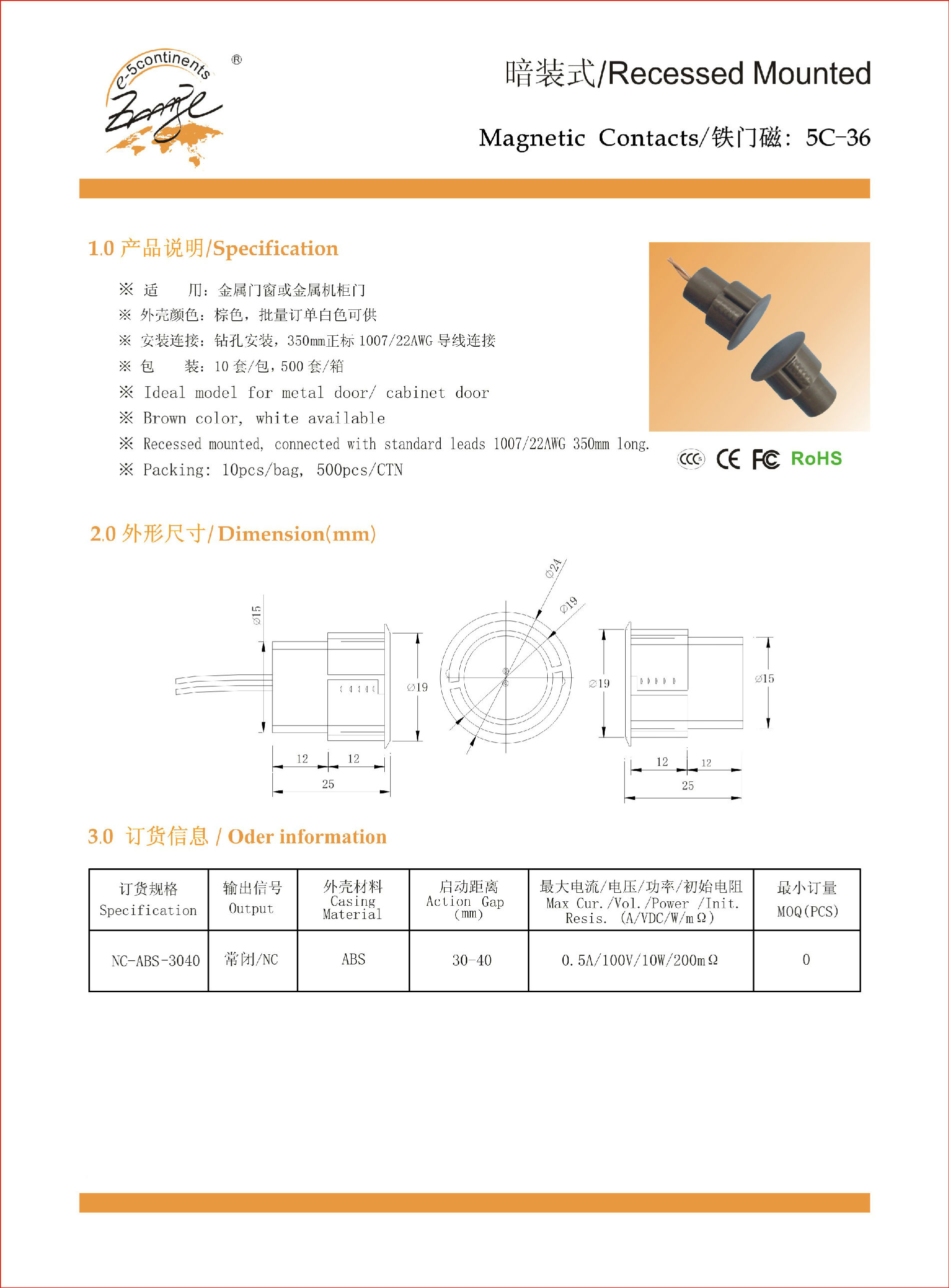 五洲嵌入门磁窗磁5C-36