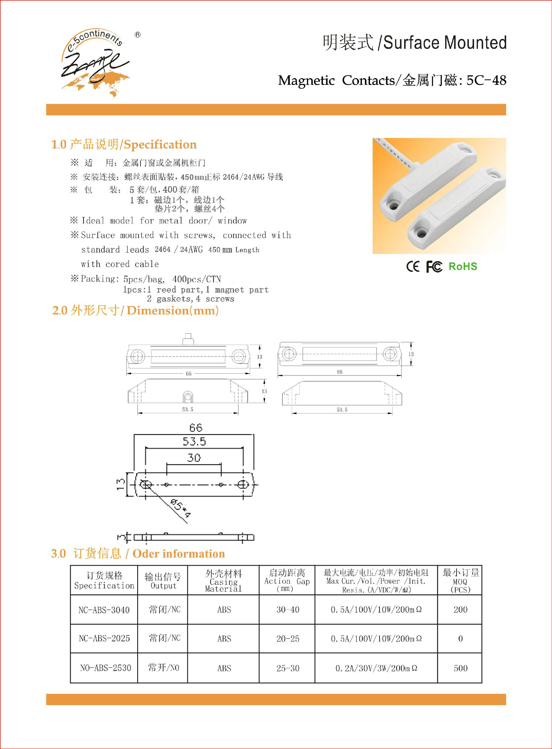五洲贴装门磁5C-48