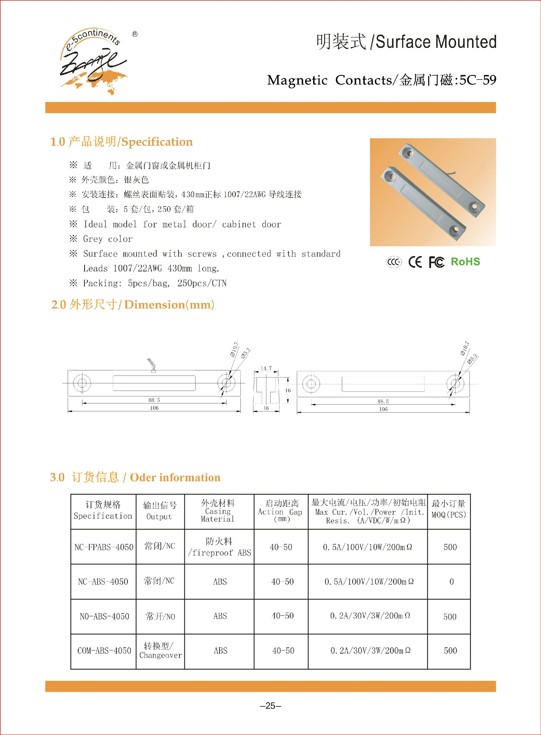 门磁、窗磁安防配件产品