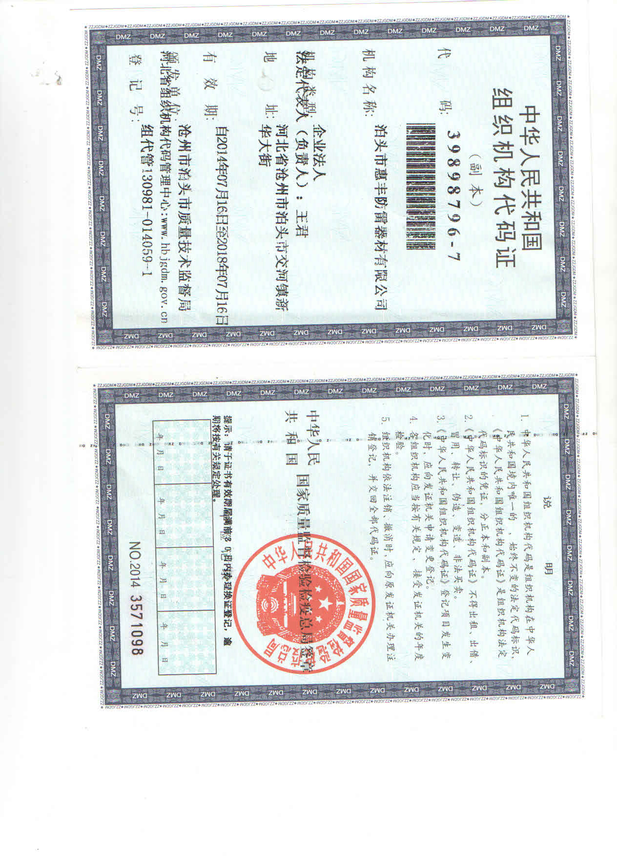 组织机构代码证