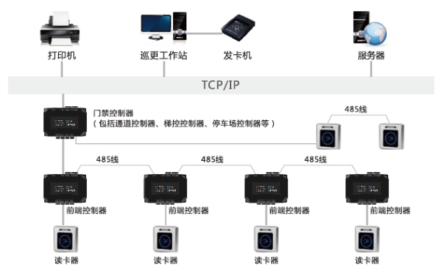 迈斯在线巡更系统可独立自成系统使用,但通常为一卡通系统中的扩展应用子系统,直接采用门禁系统中的读卡器作为巡更读头(没有门禁点的地方可单独布置485读卡器),最大限度节省项目成本,同时比传统离线巡更的实时性更好,可靠性更高,也更加符合高安全场合的巡更应用需求。