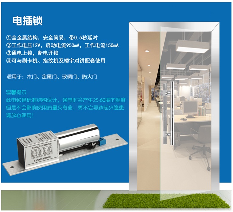 2、工作状态下锁体温度:没有一款电插锁在工作状态下不发热,但不应达到“煮鸡蛋”的程度。