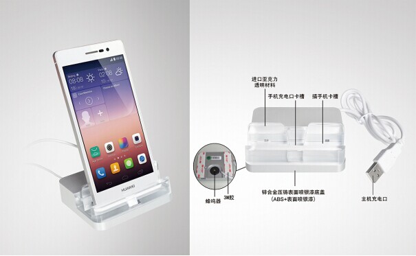 手机拔插防盗报警,提供手机充电功能,二次防盗报警