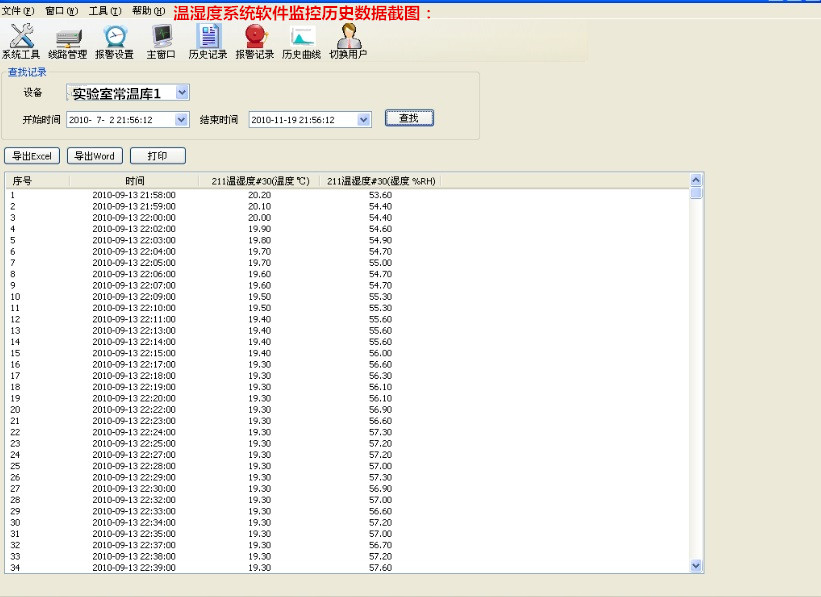 5、监控主机端利用监控软件可随时打印每时刻的温度数据及运行报告。