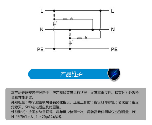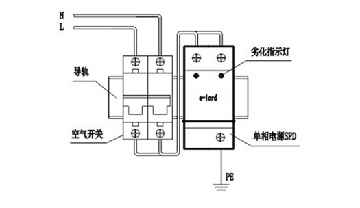 注:L为火线;N为电源零线;PE为地线。 | 应检查空气开关已经合闸导通,以保证避雷器处于运行状态; 不要在雷雨天安装。 |