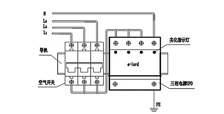 注:L为火线;N为电源零线;PE为地线。 | 应检查空气开关已经合闸导通,以保证避雷器处于运行状态; 不要在雷雨天安装。 |