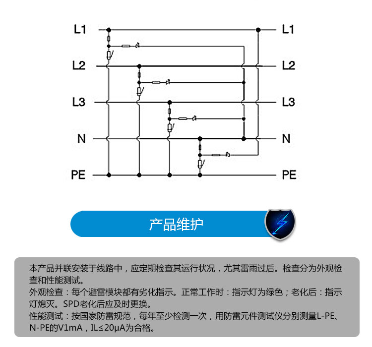 EPP系列交流型电源SPD是由多个单片式防雷芯片组成,针对不同配电系统所要求,可以自由组合成单相或三相保护,防止感应过电压或操作过电压对低压用电设备的损坏。
