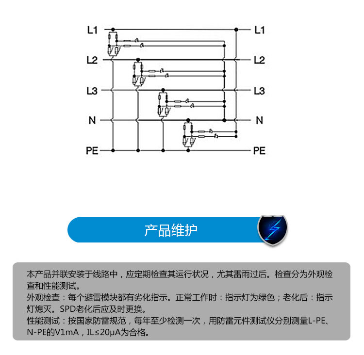 EPP系列交流型电源SPD是由多个单片式防雷芯片组成,针对不同配电系统所要求,可以自由组合成单相或三相保护,防止感应过电压或操作过电压对低压用电设备的损坏