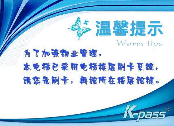 本系统有类似于公交IC卡功能,对住户使用电梯刷卡收费。发给用户的每张IC卡,都有相应的使用权限,即通过物业公司对IC卡进行设置,住户持有效的 IC卡,在有效的时间内可以使用IC卡到达自己的楼层,或其他共用楼层。物业公司可以根据IC卡限时、限层、限次的特点,自行设置来进行收费管理。如:一个住在三楼的用户,管理中心规定每月应交30元电梯使用费,该用户于1月1日交给物业公司90元该项费用,则物业公司可将该用户所用的IC卡设为1月1日到4月1日为有效卡,则该用户到4月2日如果未到物业公司去交纳4月(即第4个月)的电梯使用费,则该张卡将自动转为无效,如果该用户继续到物业公司去交纳30元该项费用,则物业公司将通过IC卡使用延期,将该卡的有效使用期限延长至5月1日。