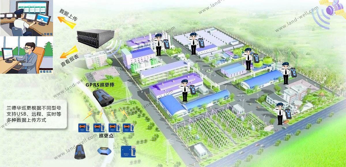 兰德华制定了完整的解决方案,对巡逻工作的监督与考核兰德华“云巡巡检管理系统”有效解决上述难题。云巡网络巡更管理系统包括:云巡棒、云巡点、以太网远程通讯座、人员识别钮、云巡管理软件等主要部分。工作原理是:将地点信息钮作为巡逻地点或设备的标识,安放在巡逻路线的关键点上。巡逻人员读取人员识别钮(如应用指纹型云巡棒可以自动比对指纹进行人员确定)后开始巡逻,巡逻过程中用云巡棒读取地点信息钮,巡逻时间和地点被记录在云巡棒中(如使用的GPRS实时产品,巡逻信息会实时自动上传云端)。定期将云巡棒中的巡逻记录上传到云端软件中。云端管理软件将自动对事先设定的巡逻计划同实际的巡逻记录进行对比,就自动可得出正常、漏检、故障等统计报表,并及时以电子邮件的方式或通过手机APP直接推送使用方管理者。通过这些报表可以真实的反映巡逻工作的实际完成情况。由于地点信息钮采用微型半导体和射频感应技术生产制造,内有唯一编号、无需供电,防水、防腐、防尘、不易丢失,操作者无法伪造巡更记录,因此是人员巡逻管理的有效工具。“云巡”云巡更的推出,很快得到市场的认可,已经广泛的深入到了人们日常的生产、生活中间,为构建和谐社会发挥着积极有效的作用。典型应用如:石油石化、企事业单位、工厂、物业小区、商场宾馆、学校、部队、医疗等安全巡检管理。