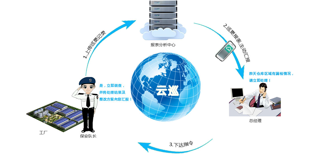 兰德华云巡系统,采用世界领先的RFID自动感应识别技术、云计算、云托管、云储存网络通信与数据处理技术,对巡逻人员的考核管理都实现随时随地,巡逻信息不再传输给计算机,而是直达云端,如需查看,只需登录网页,或者手机APP推送的信息即可。