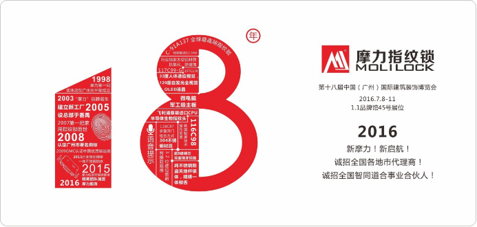 近两年,摩力指纹锁实力迅速增长,发展规划更加宏大清晰,随着企业结构不断优化,核心团队逐渐完善,2016年将是摩力指纹锁巨变的开始,而2016广州建博会则是摩力的代理商和朋友见证摩力巨变的开始。
