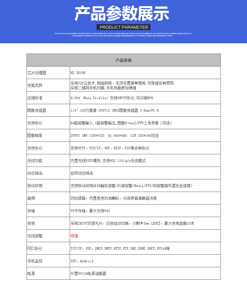 爆款 智能网络监控摄像机 移动侦测邮件报警 无线wifi监控摄像头