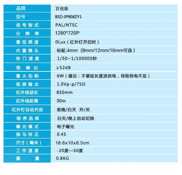 型号:高清监控摄像头 百万高清720p 红外夜视室外防水 家用监控器探头