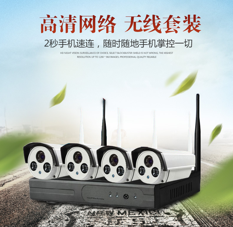wifi网络摄像头+4路嵌入式NVR硬盘录像机 无线监控套装 经济型