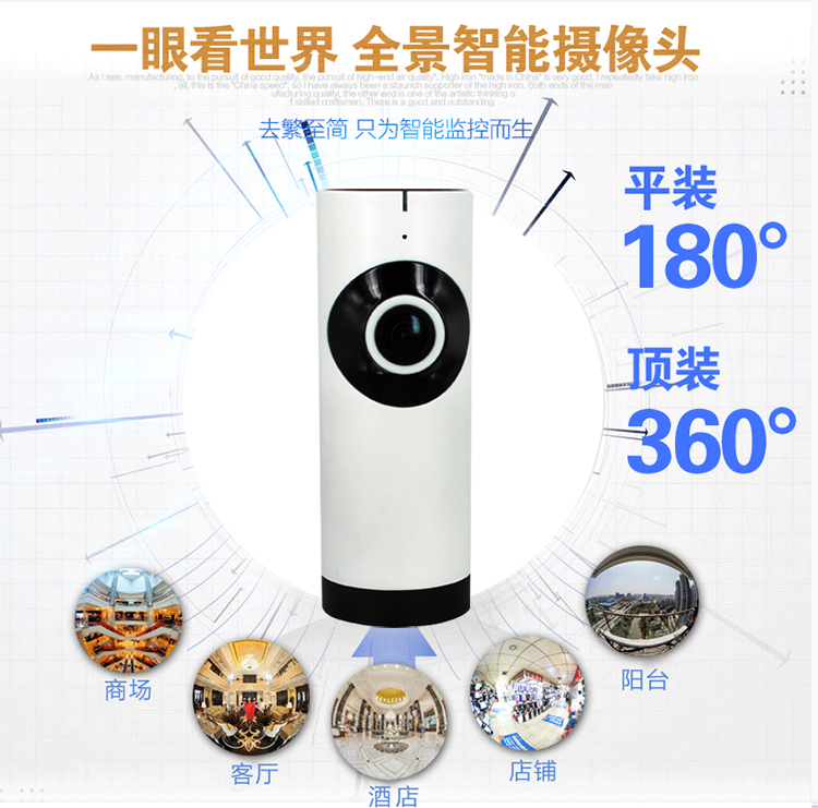 百视盾全景监控无线wifi摄像头网络高清摄像机智能鱼眼广角家用