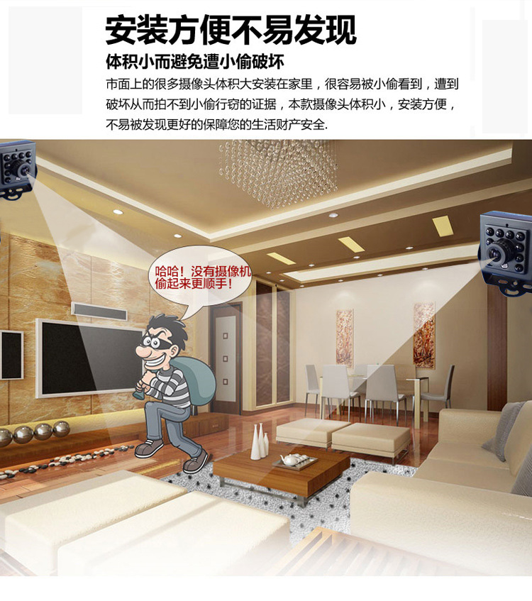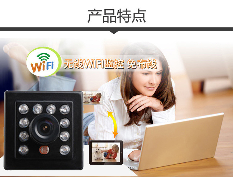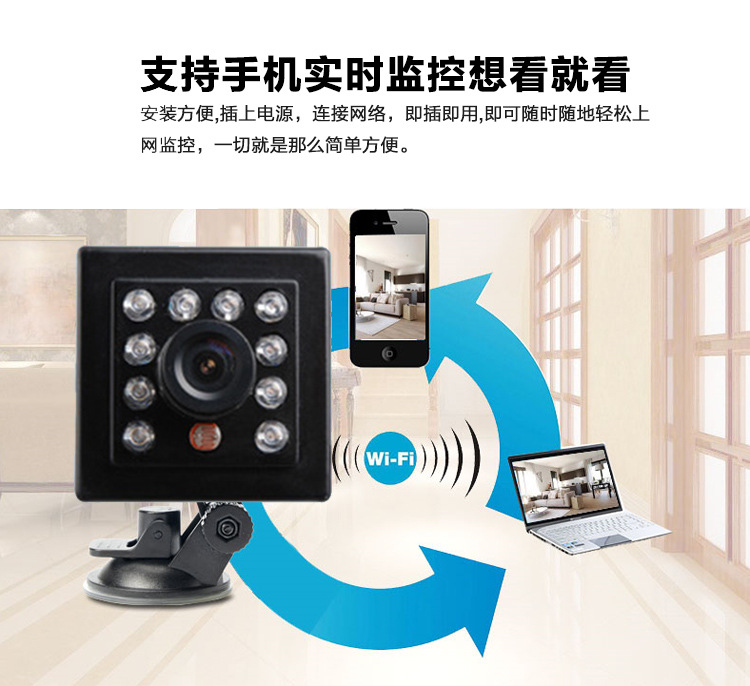 百万高清夜视功能红外微型安防摄像机无线WiFi监控摄像头