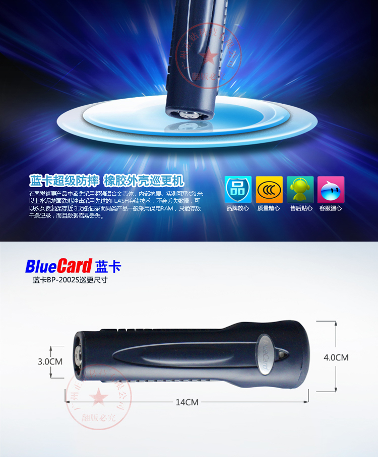 蓝卡BP-2012S BP-2002S巡更棒巡更机感应巡检器巡逻系统巡逻棒 bluecard