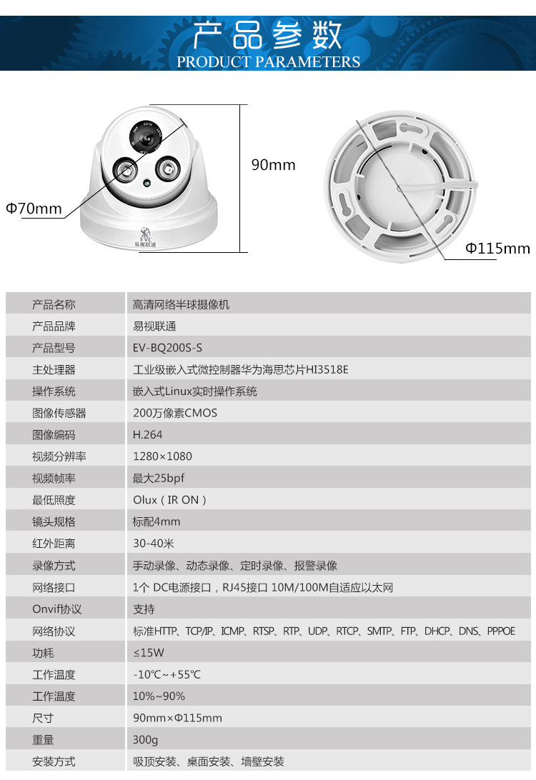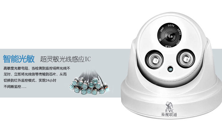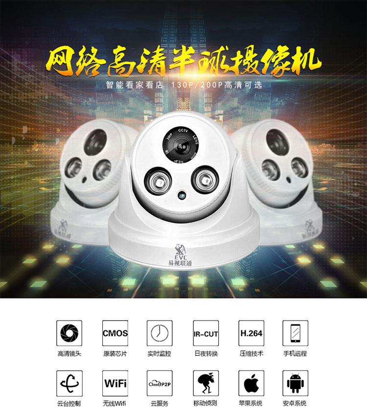 易视联通130万网络高清红外夜视半球监控摄像机EV-BQ130S安防监控摄像头生产厂家直销
