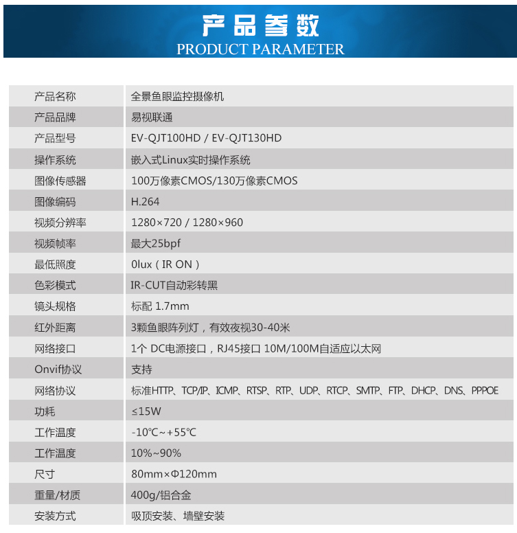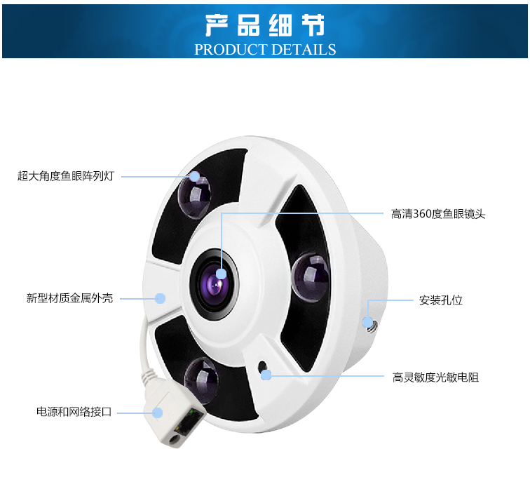 全景鱼眼,采用天视通方案,高清全景效果,360°全方位监控。高性能DSP ,采用逐行扫描CMOS,自带编码H.264 ,支持ONVIF 2.0,兼容性更强,自带设备ID号,远程无需域名、端口映射等一系列繁琐事宜,自带悬浮窗口功能,可以超方便满足客户办公、娱乐、监控等服务。 自带NVSIP协议,兼容海康、大华、美电等多家IPC,兼容ONVIF协议,三颗鱼眼阵列灯,有效夜视效果40M.