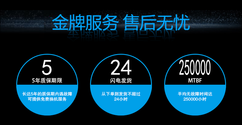 10. 平均故障时间达250,000小时,在长达5年的质保期内遇故障可提供免费换机服务。