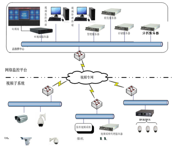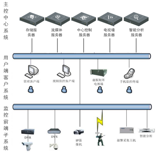 系统由主控中心系统、用户端客户系统、监控前端子系统等组成。