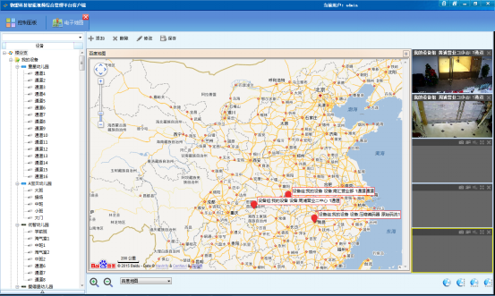 提供电子地图功能,可以查看设备的属性信息,打开实时视频,在地图上显示报警提示等,支持百度在线地图、离线地图和其他地图的添加。