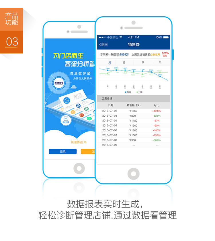 零售店分为两类,一类是小体系的单店加盟店,另一类是品牌连锁店。前者的痛点在于现有设备满足不了即时监管需求。比如传统的pos机等设备很落后,店家想去了解情况,但是总让店员汇报可能会造成信任问题。后者的痛点在于,在他们大的数据体系里面,缺失客流量、成交率这两条核心指标。通过这样的调查,分类分析的方式,雅量数客宝抓住了用户的痛点。