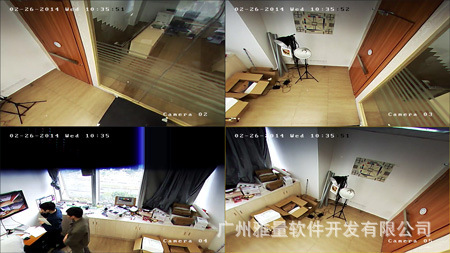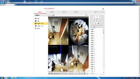 功能二:360°俯瞰全景、掌控全局  检测1:全景:将摄像机倒挂安装于天花板上,并接上电源和网线,登陆其网页客户端,在预览窗口发现,该机有两种全景模式,一种360视角,另外则是两个180°的全景。同时该机还支持四个分割单画面,此外在360°全景模式下,有三个分割点可自由拖动选择,部分场景要放大时鼠标选取则可放大仔细观看。另外其还有预置位巡航功能,选择标记好多个预置的方位,设置好巡航时间,即可在这几个方位之间来回循环巡航监控。