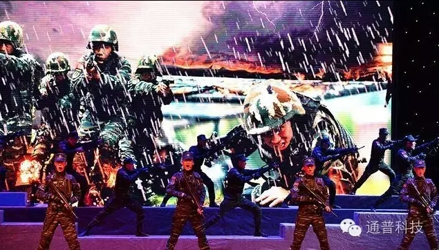该项目采用多种规格屏幕,包括主屏、副屏、台幕屏和侧屏,屏幕点间距包括P4、P6、P7.62,面积为100多平方米。屏幕的种类多,数量多,从生产到安装都要求军工品质,客户对屏幕的拼接统一性和平整度要求高,且给予安装的时间只有不到2天。通普科技从原材料采购、生产、安装严格按照客户要求,在预定时间内顺利完成测试并点亮,为建军节文艺汇演提供了极佳的视觉效果。公司对项目的响应速度和效率令客户印象深刻!