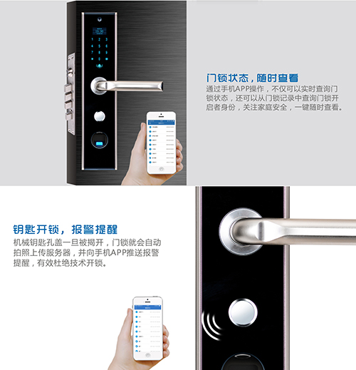 机械钥匙孔盖一旦被揭开,门锁就会自动拍照上传服务器,并向手机APP推送报警提醒,有效杜绝技术开锁。