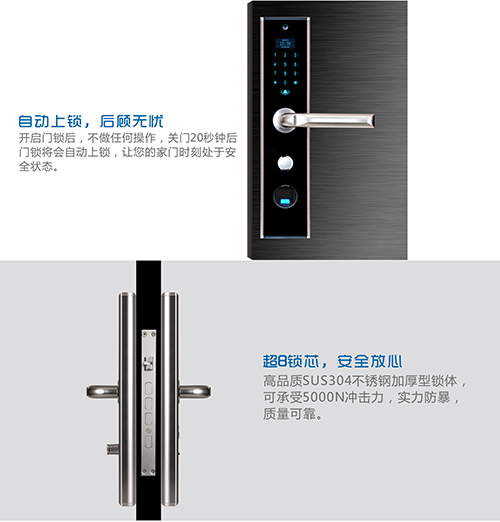 当密码输入错误5次或指纹验证失败8次,门锁会自动拍照取证,输入面板与指纹头自动锁死5分钟,并向手机APP推送报警提醒。