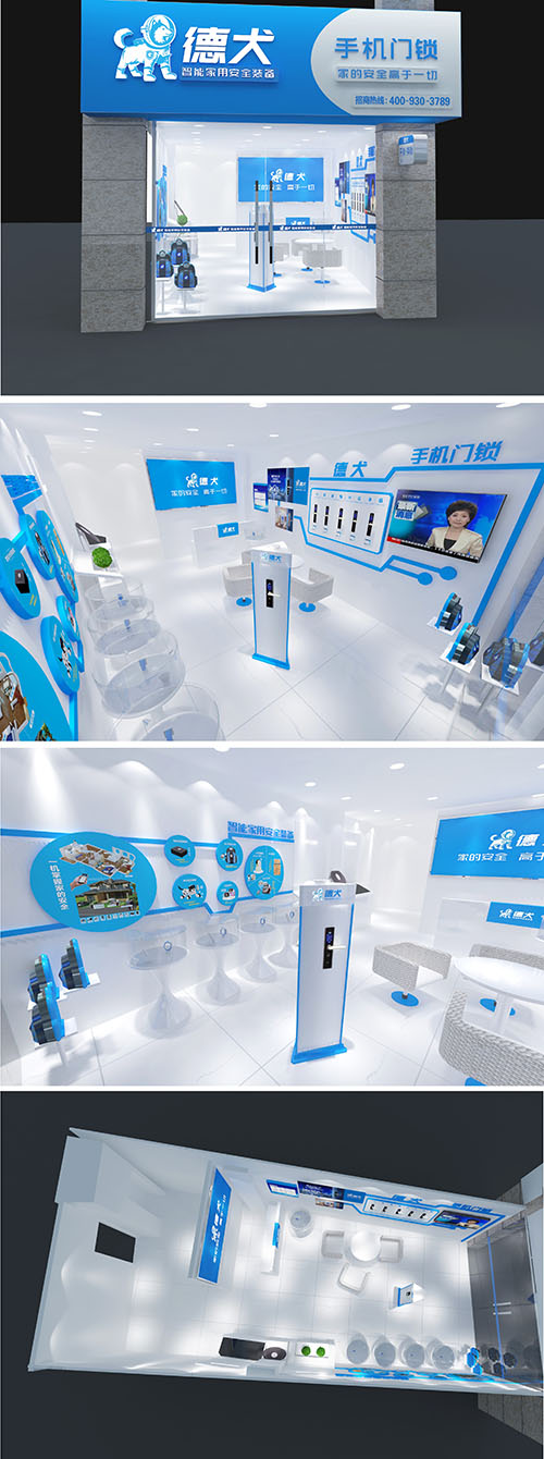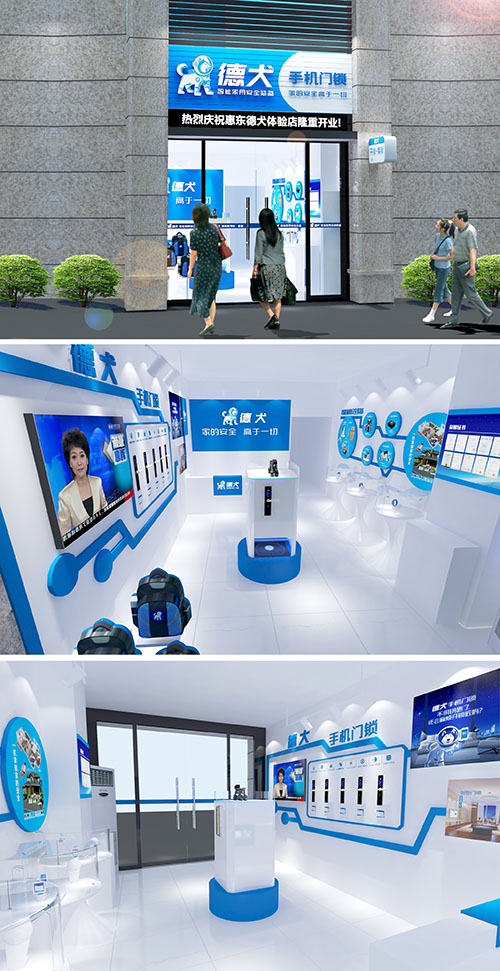 德犬智能家用安全装备体验店,全国统一标准店面形象,统一产品,统一服务,体现出德犬整体的品牌形象,让消费者体会到科技带来的愉悦。