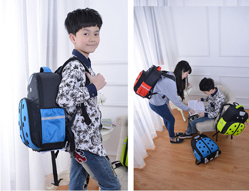 书包360度具有反光条,车灯照在反光条上时反射强光,就如同背在身上的全方位安全警示牌,对行驶的机动车、非机动车起到警示作用,降低交通意外发生的几率。