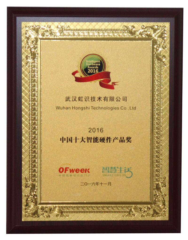 由OFweek中国高科技行业门户联合智慧生活网主办、OFweek可穿戴设备网及OFweek智能家居网共同承办的2016中国智能硬件行业年度评选“China Intelligent Hardware Awards 2016”评选结果于11月17日在“OFweek财富之夜”颁奖晚宴上正式揭晓。虹识技术携虹膜智能锁参评,并从百余家智能硬件厂商中脱颖而出,荣获2016中国十大智能硬件产品奖。