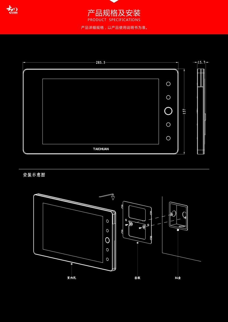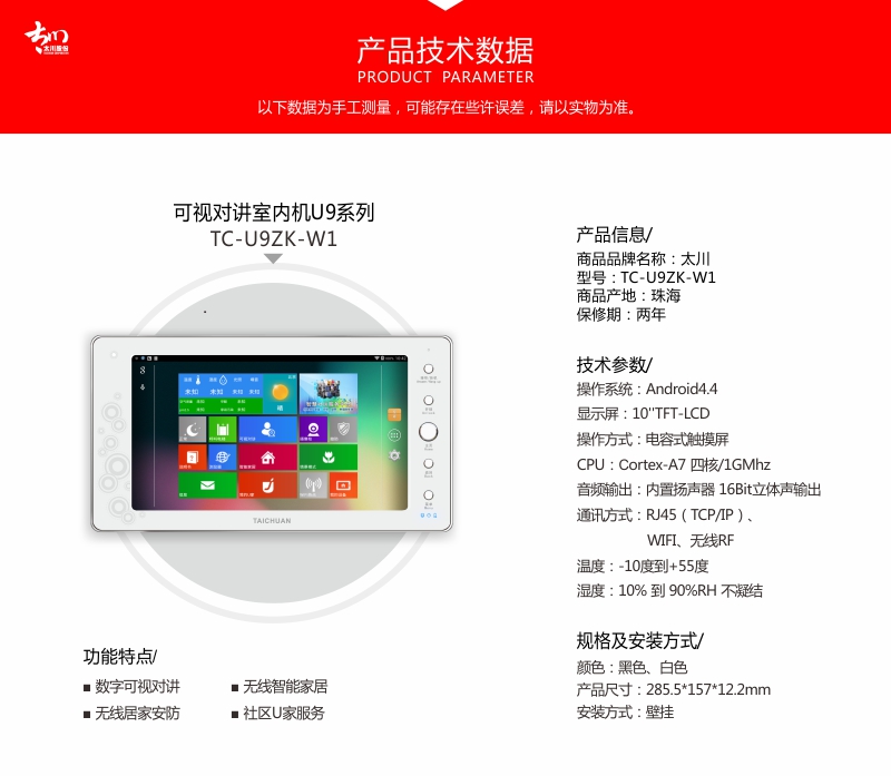 太川 TC-U9ZK-W1 数字可视对讲室内机