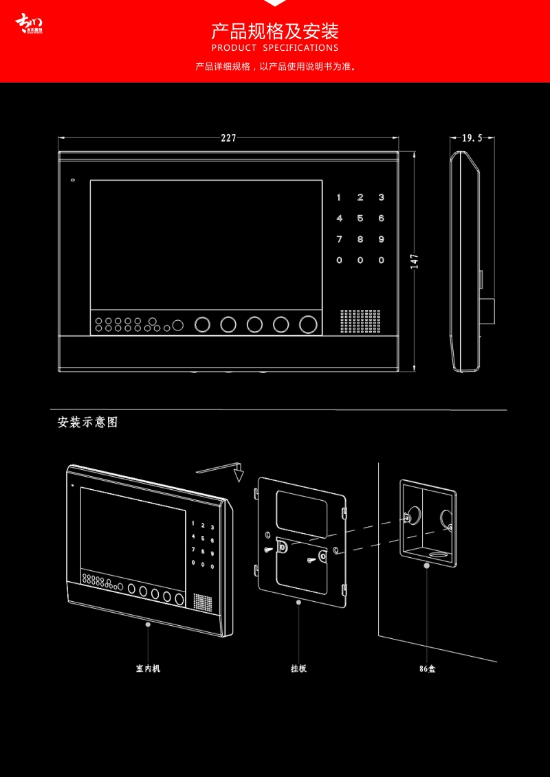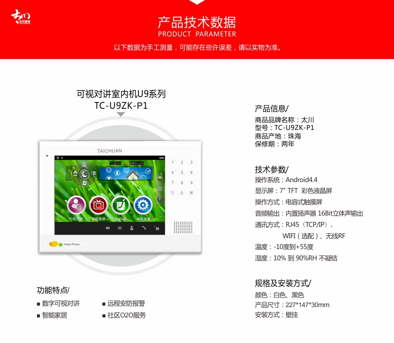 太川 TC-U9ZK-P1 数字可视对讲 室内机