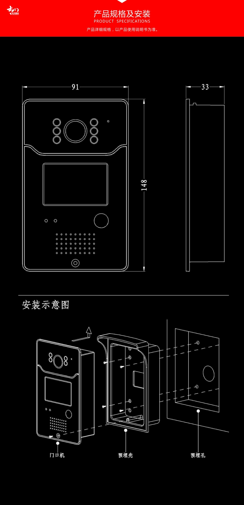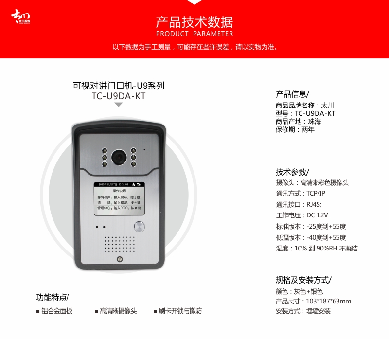 太川 TC-U9DA-KT 数字可视对讲户门口机 别墅门口机