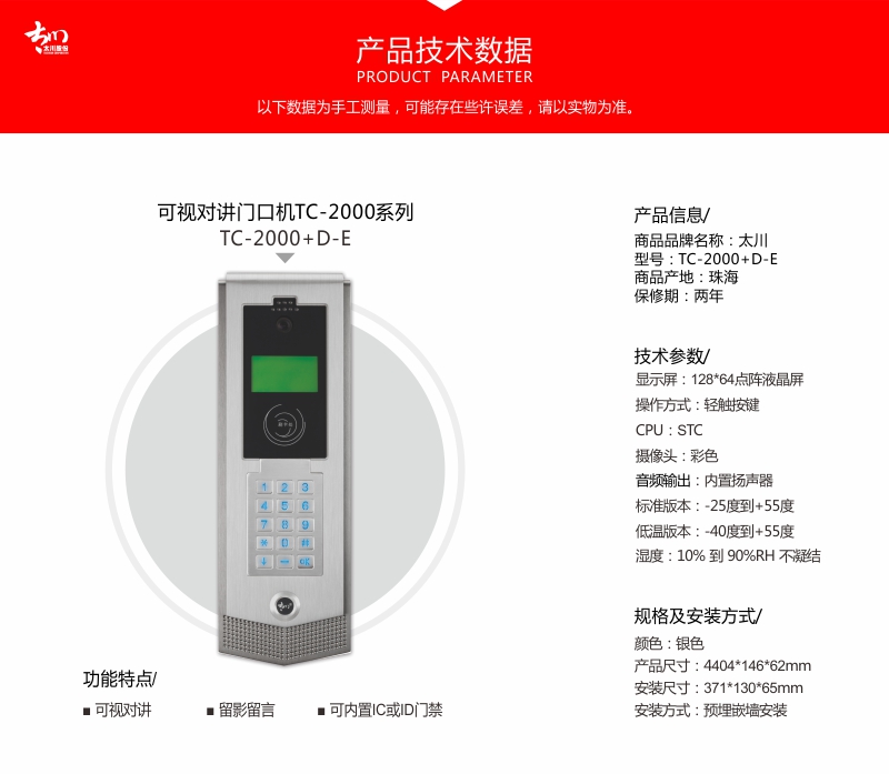 太川 TC-2000ADW-E 可视对讲单元/小区门口机