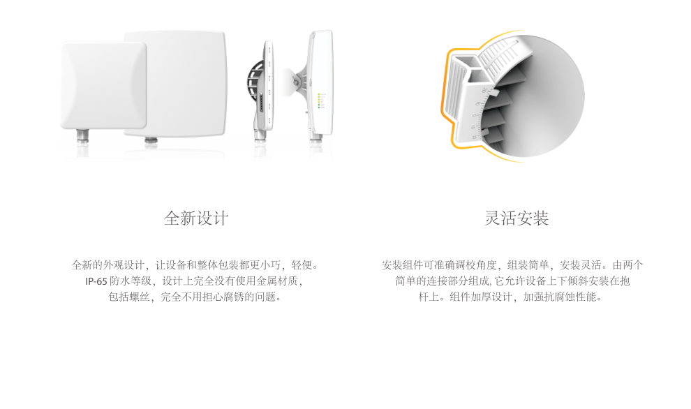 •专业的关节型安装挂架,同时满足抱杆和挂墙两种安装场景