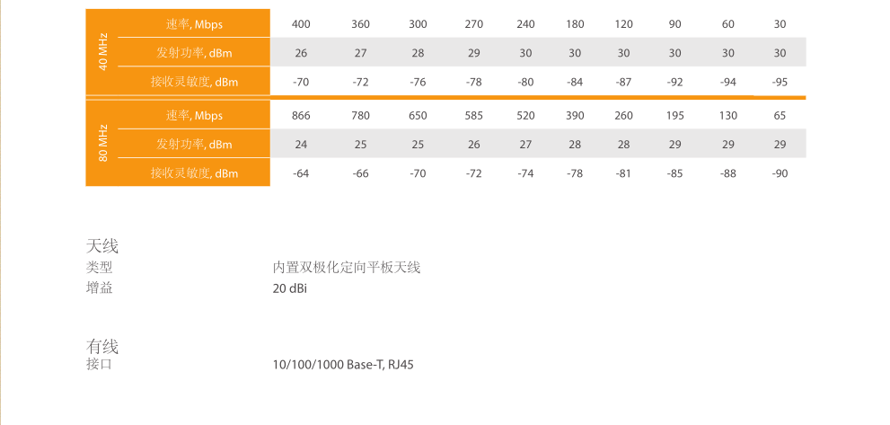 •灵活的信道带宽:20, 40,80 MHz