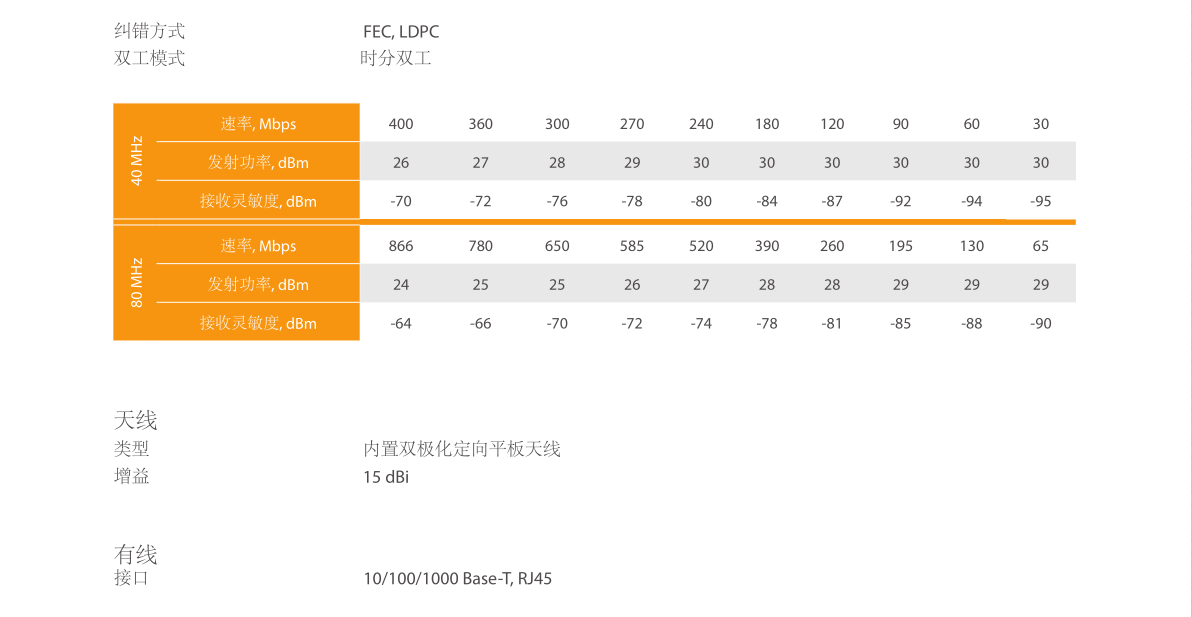 •灵活的信道带宽:20, 40,80 MHz