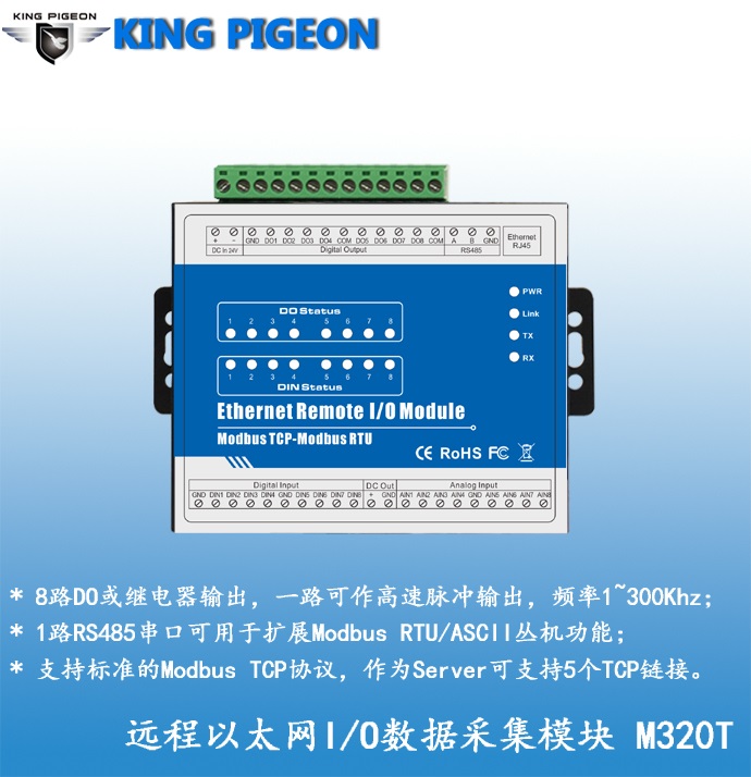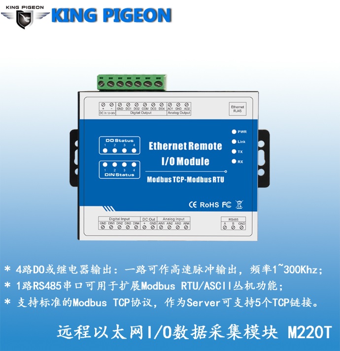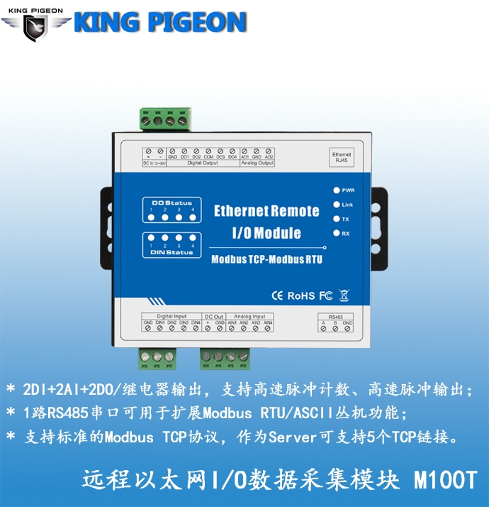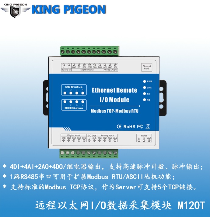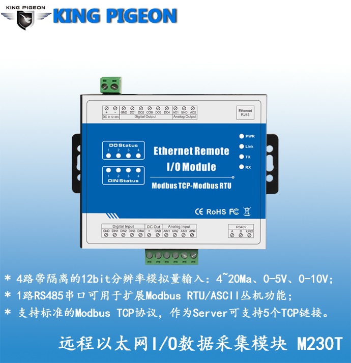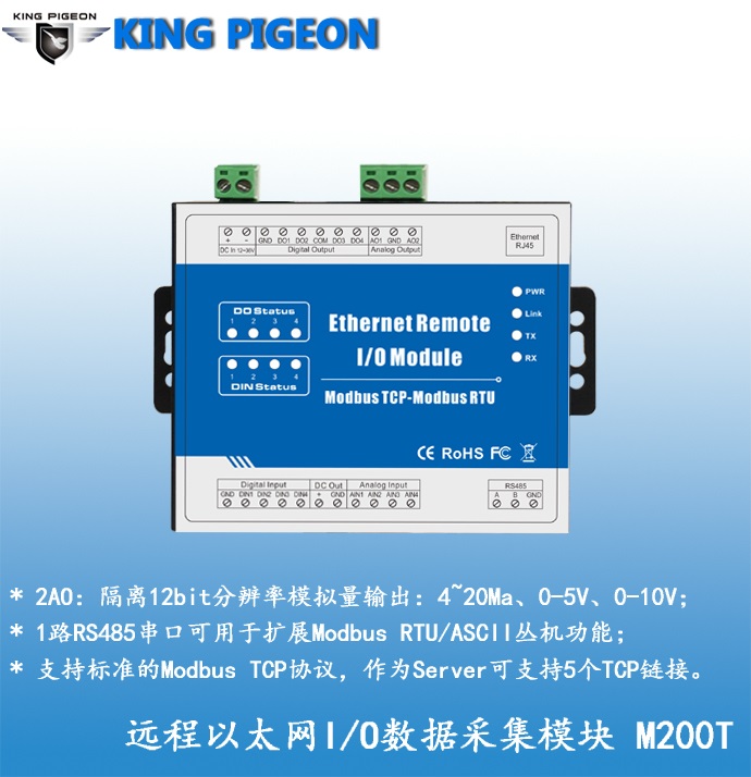 变频器专用以太网数据采集模块支持AO输出,Modbus TCP协议