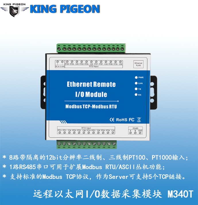 MxxxT工业远程以太网I/O数据采集模块内嵌32位高性能微处理器MCU,集成1个工业级10/100M自适应以太网接口支持标准的Modbus TCP协议,可轻松地实现与第三方 SCADA 软件、PLC、HMI设备整合应用。自带一路RS485接口使其具备良好的扩展性,可通过RS485总线级联标准的Modbus RTU I/O设备,以实现各种数字量、模拟量、热电阻IO模块的组合,节省成本。同时,本设备具有丛机寄存器映射的功能,丛机的数据均自动采集到本机的映射存储区,上位机查询时无需等待便可快速响应,满足了工业现场苛刻及时性功能需求。