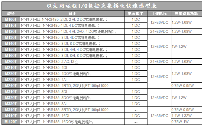 MxxxT系列工业远程以太网I/O数据采集模块按照苛刻的工业应用环境需求而设计,广泛应用于各种工业自动化生产、安防监控系统、自动化测量与控制系统中。用户可以采用不同的I/O的模块以及通过Modbus RTU扩展功能,灵活地组合成不同I/O组合需求的场合,为用户提供完整的解决方案。