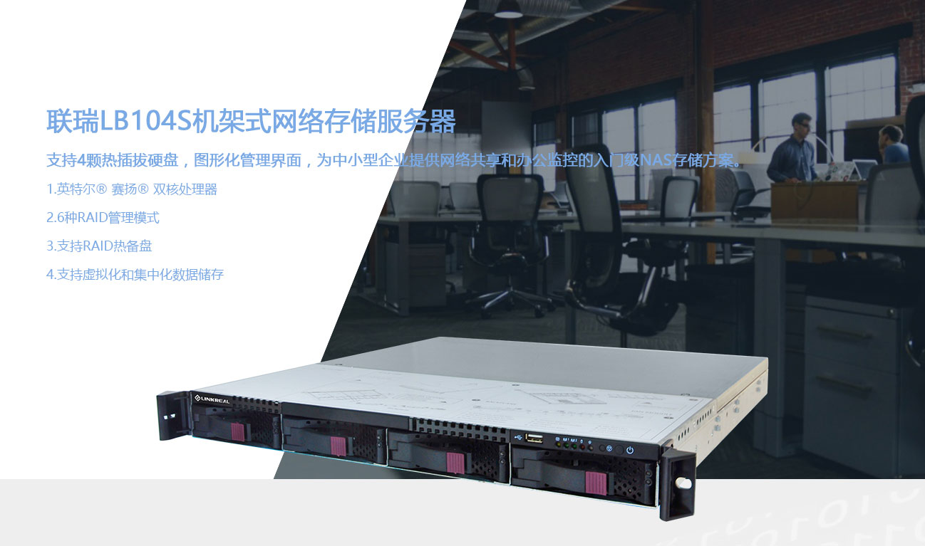 联瑞【linkreal】LC104S NAS 网络存储服务器4盘位空槽 1U机架式 黑色不含硬盘