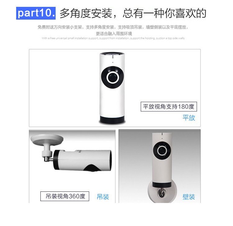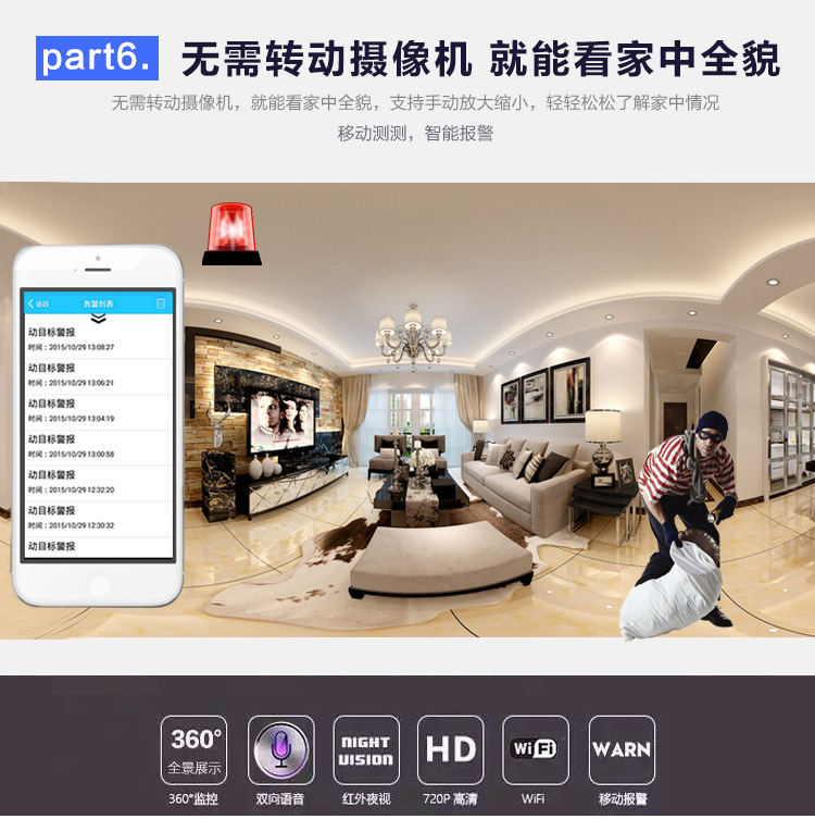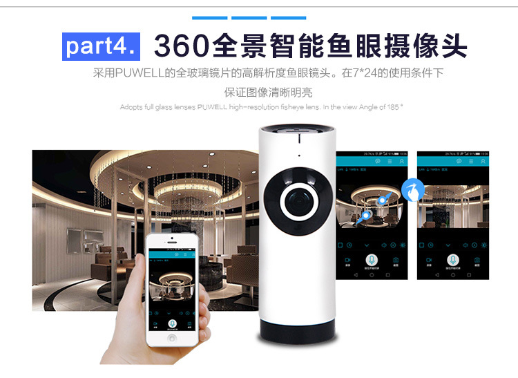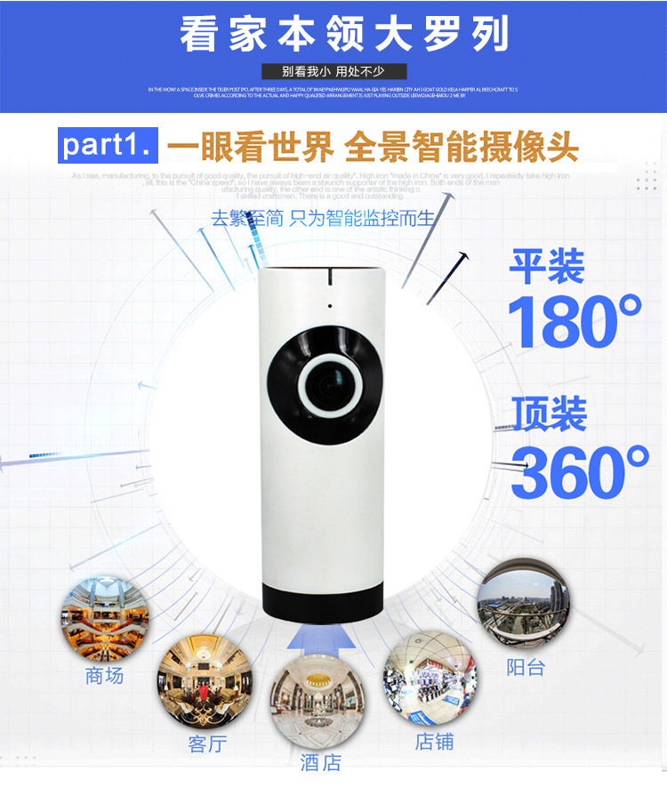 360度3D全景摄像机 智能家居摄像头 鱼眼无线wifi 广角监控一体